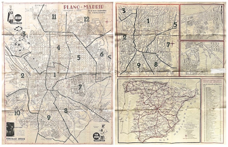 Mapa de España Ferrocarriles y Carreteras Más Importantes ; 3 Planos de Madrid ; Plano de Madrid de la Guia-Calendario "El Firmamento"