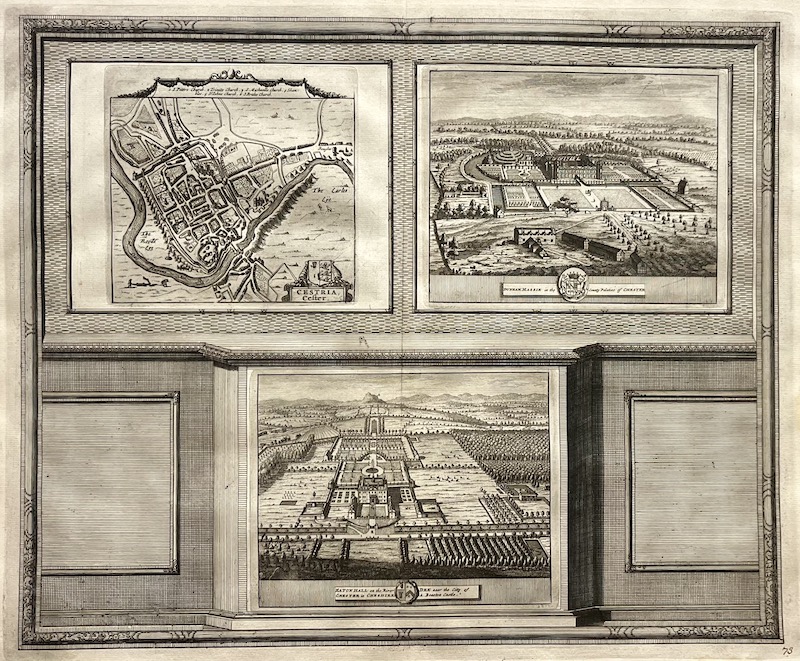 La Galerie Agréable du Monde, Nº 73 - Cestria, Cester ; Dunham Massie in the County Palatine of Chester ; Eaton Hall on the River Dee near the Citty of Chester in Cheshire A. Beeston Castle