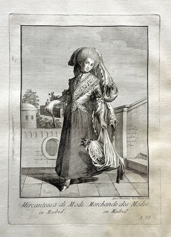 [Un] Grabado antiguo original, llevado a cabo por Juan de la Cruz y que fue incluido por Teodoro Viero en su obra titulada "Raccolta di Stampe che Representano Figure ed Abiti di Varie Nazioni ".