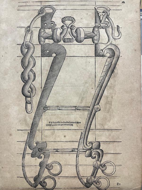 Esta obra fue publicada en Hanau, en Alemania, probablemente entre los años 1624 y 1630, y estos grabados representan diferentes modelos de frenos y bocados ecuestres en estilo renacentista tardío, propias de los manuales ecuestres y de guarnicionería del siglo XVII.