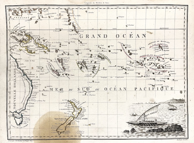 [Un] Mapa representando Oceanía Oriental y Nueva Zelanda tal y como se encontraban a principios del siglo XIX, llevado a cabo por el cartógrafo y editor Pierre Lapie.