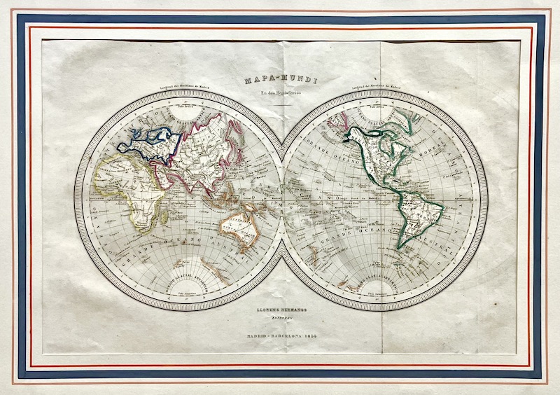 [Un] Mapamundi editado en el año 1855 por Llopens Hermanos en Madrid y Barcelona.