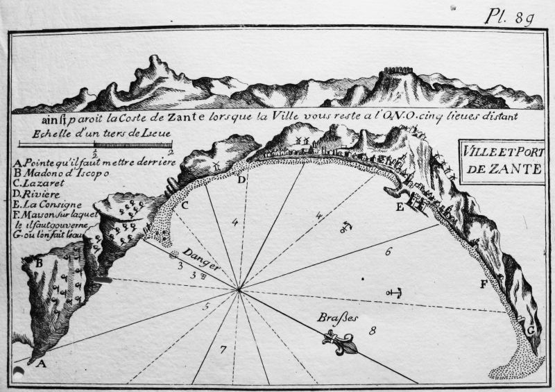 Edición francesa de Livorno. Cada mapa indica la escala, millas, yardas o millas de Provenza. Algunos representan ciudades, fortificaciones, ciudadelas, arsenales, almacenes y anclajes.