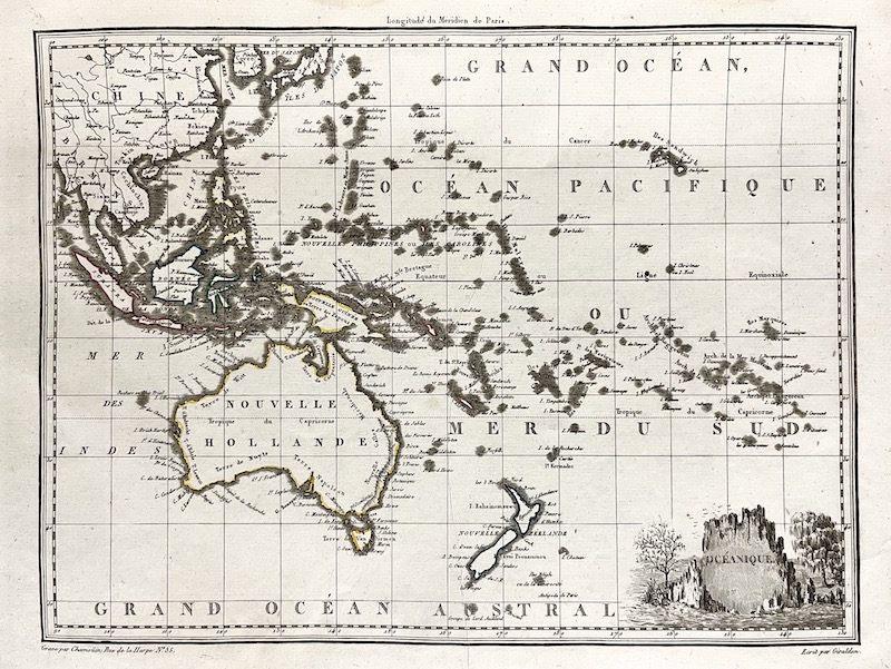 [Un] Mapa representando Oceanía tal y como se encontraba a principios del siglo XIX, llevado a cabo por el cartógrafo y editor Pierre Lapie.