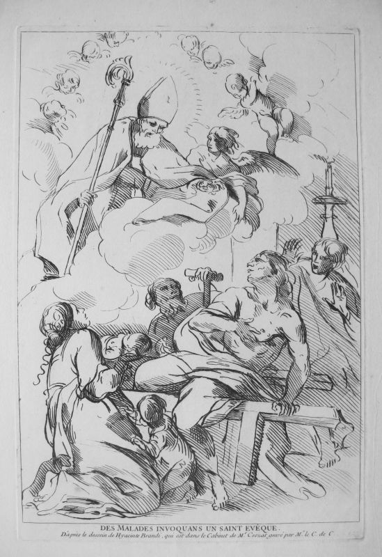 "D'après le dessein de Hyacinthe Brandi, qui est dans le Cabinet Crozat, gravé par Mr. le C. de C...". |