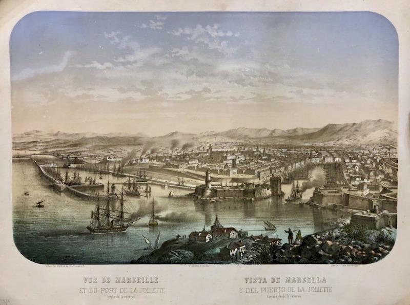 Grabado litográfico perteneciente a la obra "Ports de Mer d'Europe - Espagne" / "Puertos de Mar de Europa - España", colección de vistas de Europa y América durante la época romántica editadas por L. Turgis en París entre 1840 y 1860, con numerosos detalles y primeros planos que reflejan el punto de vista de los primeros turistas en los albores del actual turismo de masas.