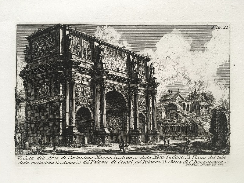 Estampa de la obra Le Antichità Romane I, Stamperia di Angelo Rotilj nel Palazzo de Massimi. Edición Romana estampada entre 1778 y 1795 al aguafuerte y buril sobre papel verjurado.