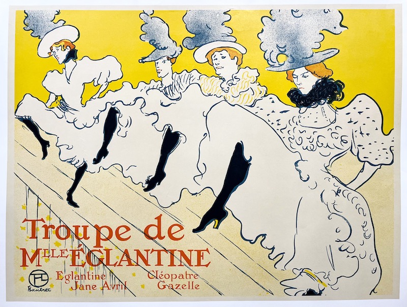 [Un] Cartel vintage editado en los años 80 de esta obra de 1895 del célebre Henri de Toulouse-Lautrec (1864-1901), y representa a un grupo de bailarinas de can-cán dirigido por la también bailarina y actriz Mademoiselle Eglantine.