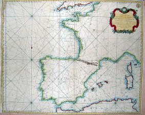 Carte reduite des costes de France, de Portugal et d'Espagne sur L'Ocean et sur la Mediterranee