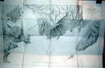 Mar Mediterraneo, costa SE de España. Plano del puerto y arsenal de Cartagena con la ensenada de Escombrera y las Algamecas