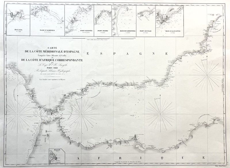 Carte de la Cote Meridionale d' Espagne Comprise enter Alicante et Cadix et de la Cote d' Afrique Correspondante [Carta de la Costa Meridional de España desde Alicante a Cadiz y de la Costa de Africa correspondiente]