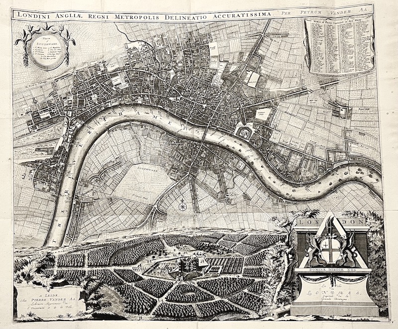 ["A Leide, Chez Pierre Vander Aa, Libraire: Imprimeur de l'Université et de la Ville."] ; ["La Ville de Londres, Capitale de la Grande Bretagne."] . |