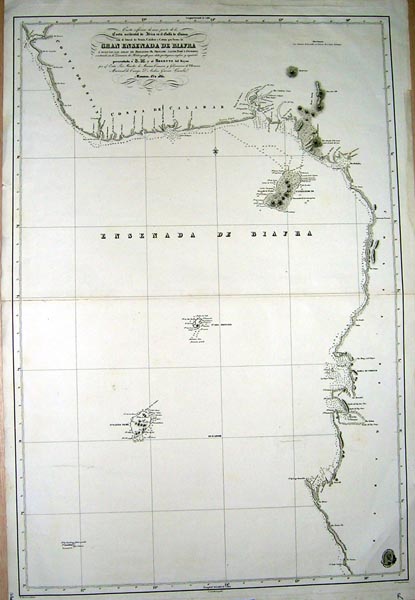 Carta marina "Construida en la Dirección de Hidrografía por datos portugueses, ingleses y españoles. Presentada a S.M. Y al Regente del Reyno por el Exmo. Sr. Ministro [...] Don Andrés García Camba".
