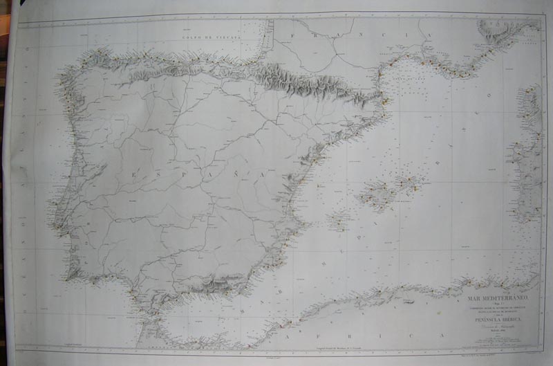 Carta marina representando el Estrecho de Gibraltar, editado por la Dirección Hidrográfica en Madrid en el año 1866.