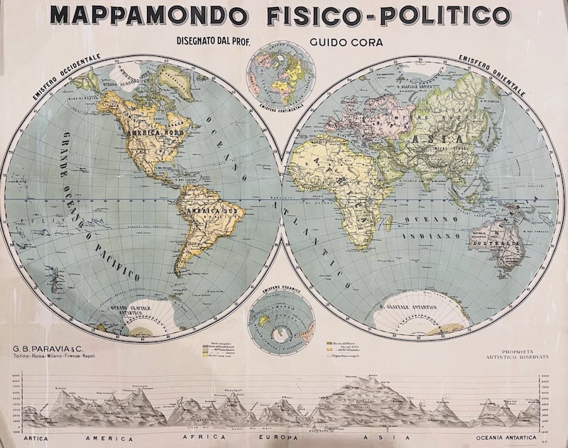 Diseñado por el profesor Guido Cora y publicado por la editorial G.B. Paravia & C. en Italia, una editorial italiana de gran importancia con sedes en ciudades como Turín, Roma, Milán y Nápoles..
