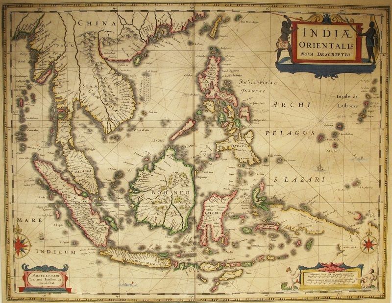 Mapa antiguo original de Johannes Janssonius, estampado para la muy rara edición con texto en español del “Nuevo Atlas o Teatro del Mundo, en el cual se contienen los mapas y descripciones de España, Asia, África y América”.