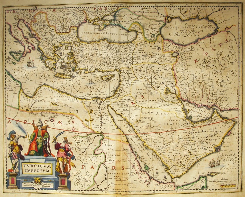 Mapa antiguo original de Johannes Janssonius, estampado para la muy rara edición con texto en español del “Nuevo Atlas o Teatro del Mundo, en el cual se contienen los mapas y descripciones de España, Asia, África y América”.