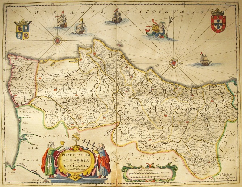 Mapa antiguo original de Johannes Janssonius, estampado para la muy rara edición con texto en español del “Nuevo Atlas o Teatro del Mundo, en el cual se contienen los mapas y descripciones de España, Asia, África y América”.