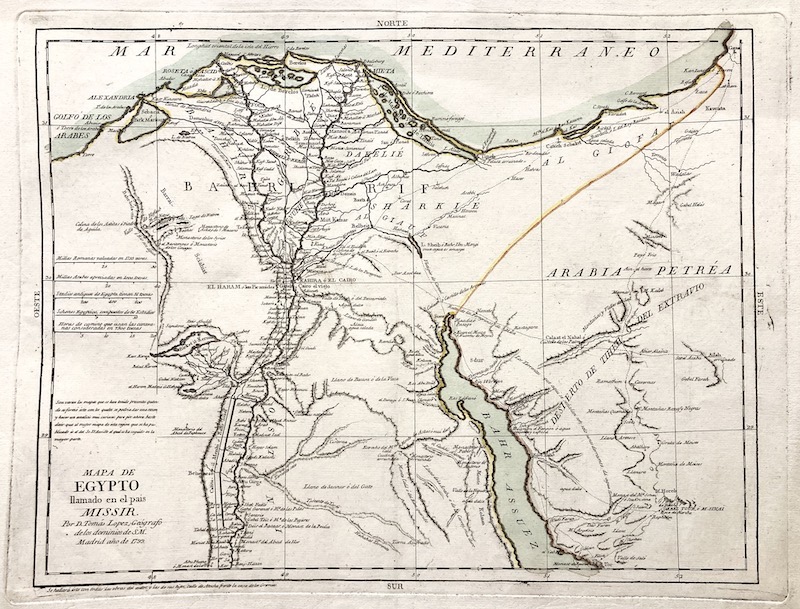 [Un] Mapa representando la región de Egipto, con especial hincapié en la representación de la hidrografía.