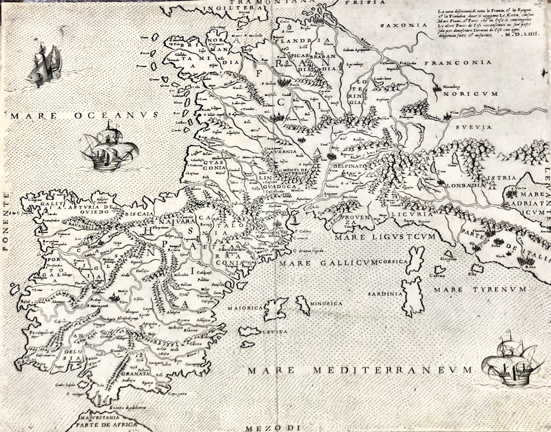 Espectacular mapa de Europa occidental publicado en Italia en 1554.