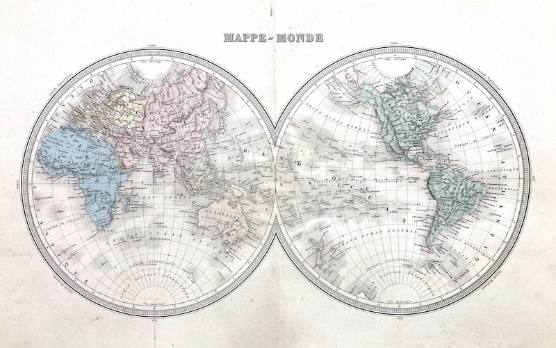 [Un] Mapamundi en dos hemisferios publicado por Furne en París y editado por Lemercier.