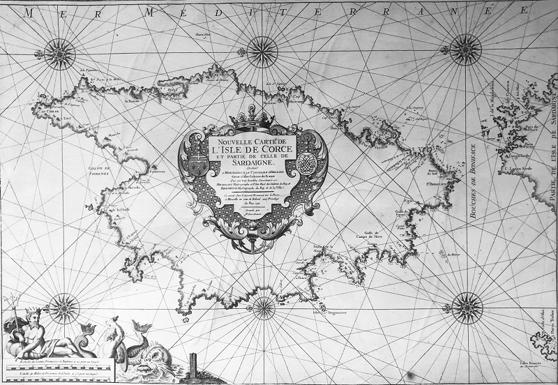 Nouvelle Carte de l' Isle de Corce et partie de celle de Sardaigne / Córcega y Cerdeña / Corsica et Sardinia / Corse
