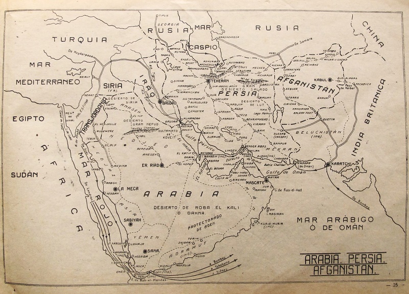 Perteneciente al "Atlas de Geografía Postal Universal", realizado por Cecilo Montañés (Jefe del Instituto Geográfico, redactó la parte Geográfica), Manuel Alzamora (Fundación de Correos, redactó las vías postales), y Fernando de Mateo Royo (Delineante, Autor de dibujos y rotulado).