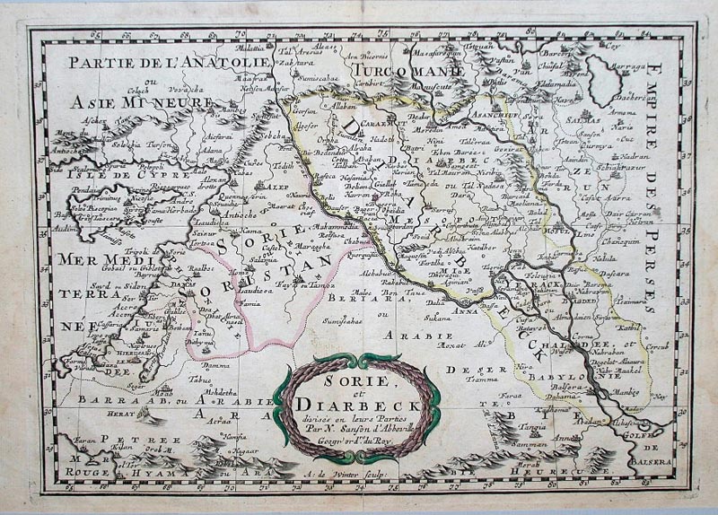[Un] Mapa, "Par le Sr. Sanson d'Abbeville. Geographe ord.re du Rey" "L'Asie, edición holandesa" A. D'Winter Sculp. A la venta otro ejemplar, muy similar, con menos color y añadiendo en la cartela "Av. Priv. Po Vingt Ans". En este no figura A. D. Winter.