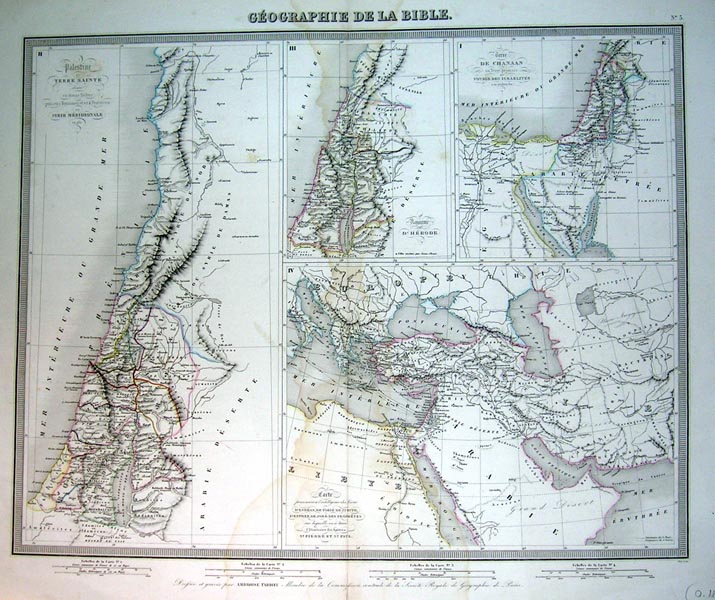 ["...sur laquelle en a trace L'Itineraire des Apotres St. Pierre et St. Paul / Royaume d'Herode / Terre de Chanaan ou Terre Promise et Voyage des Israelites a sa recherche" ; "Dressee et Gravee par Ambroise Tardieu. Membre de la comission centrale de la Societe Royale de Geographie de Paris."] .