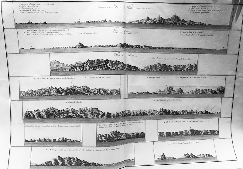 Carta marina perteneciente al "Atlas Maritimo de España", editado entre los años 1787 y 1789. Esta obra fue el punto de partida de la moderna cartografía española, de la que es considerada como obra cumbre. Combina observaciones terrestres, marítimas, astronómicas y geométricas.