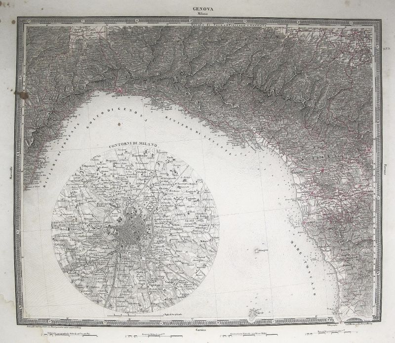 Mapa de Córcega por Joseph Edmund Woerl y editado en Friburgo por B. Herder, perteneciente al "Atlas de l'Europe en 220 feuilles" en su volumen de Italia.