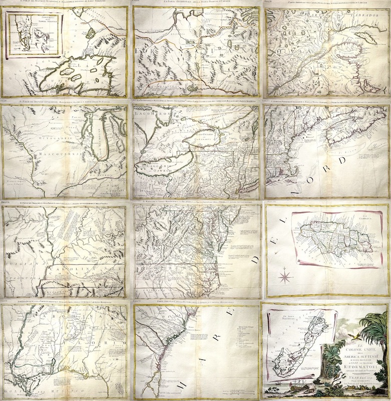 [Un] Mapa perteneciente al atlas titulado "Atlante Novissimo", obra del cartógrafo y editor italiano Antonio Zatta, y publicado entre los años 1775 y 1785; basado en el mapa mural de John Mitchell de 1755.
