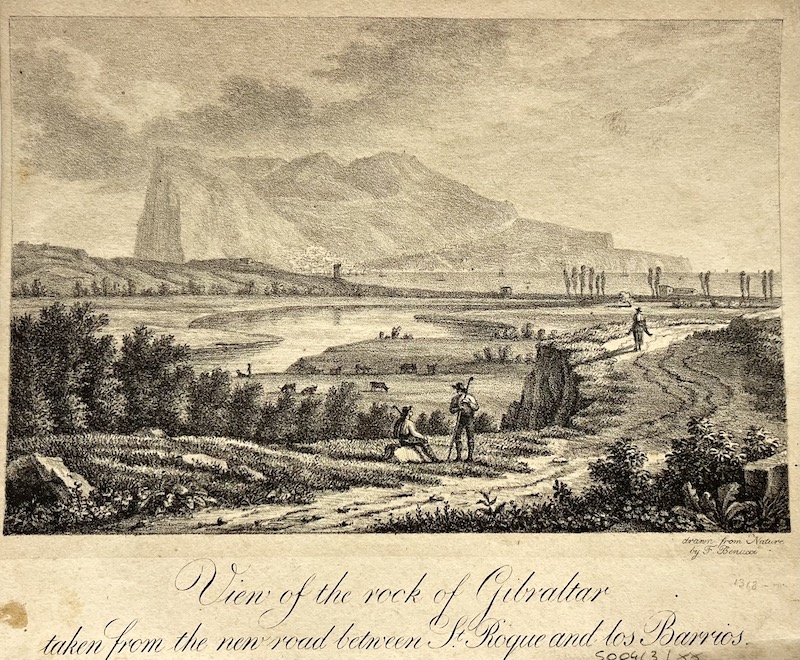 View of the Rock of Gibraltar taken from the New Road between St. Roque and los Barrios [Vista del Peñón de Gibraltar tomada desde la Carretera Nueva entre San Roque y los Barrios]